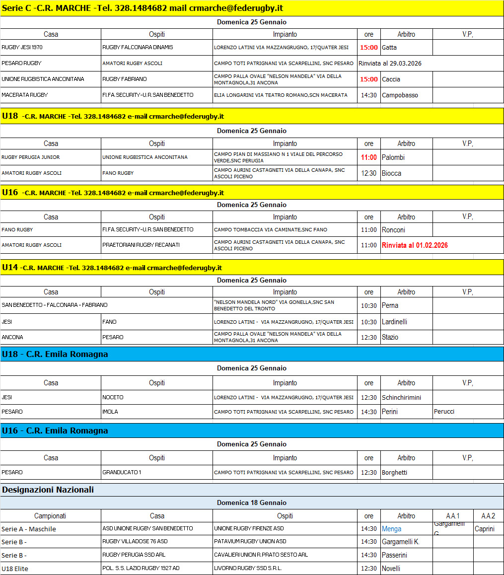 Le designazioni degli arbitri marchigiani per il 25 Gennaio 2026.