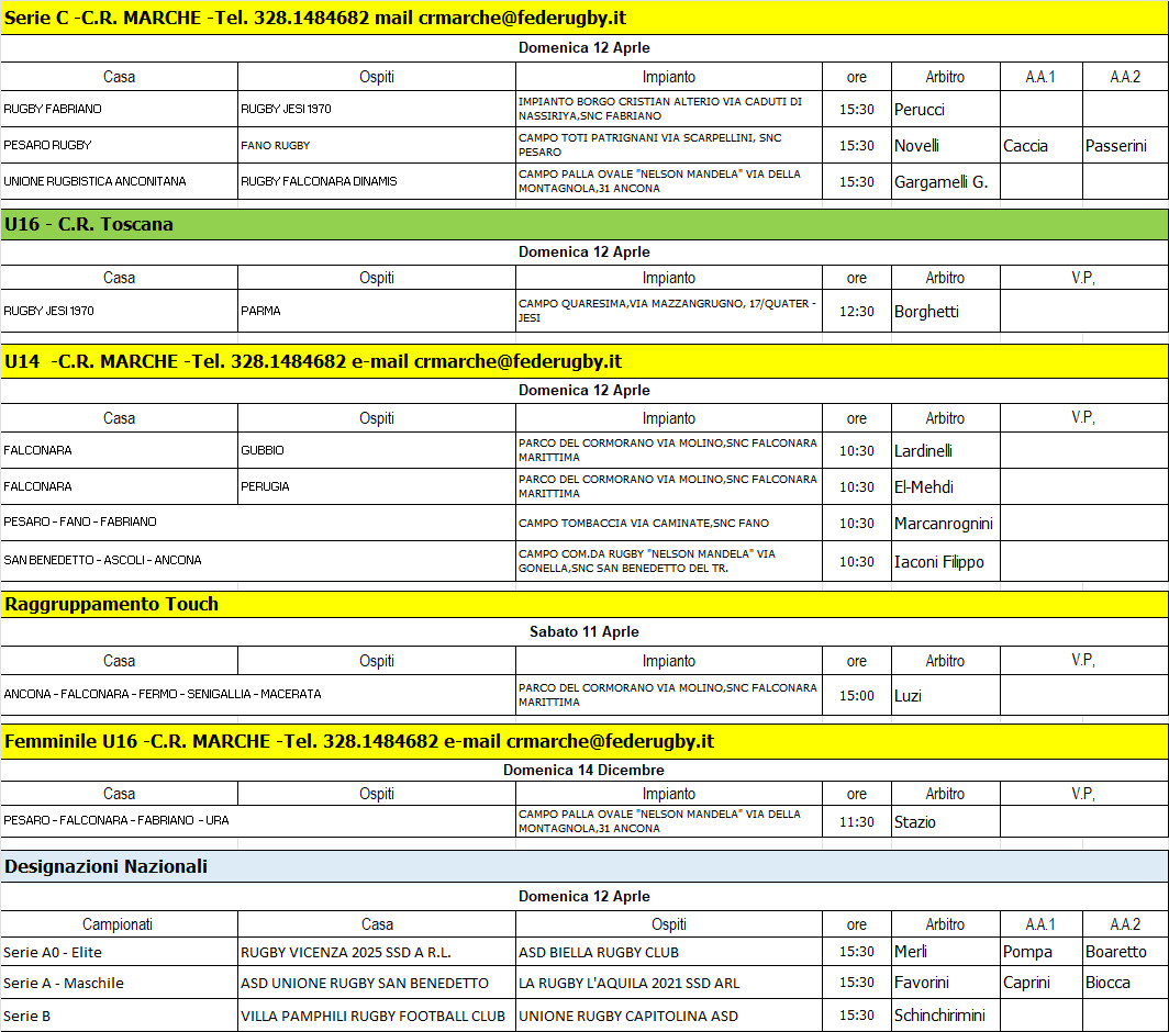 Le designazioni degli arbitri marchigiani per il weekend 11/12 aprile 2026.